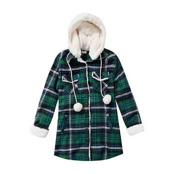 【CACO】CACO SURF.美式休閒.毛毛帽格紋長袖襯衫M綠RC2621